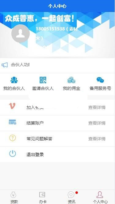 3、推广别人申请借贷产品 后台核实 推广者获得佣金 同时推广者的上级 和上上级获得不同金额的佣金