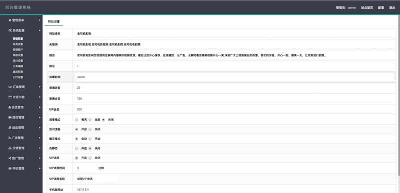 后台可以设置每天观看次数/试看时间,功能强大适合做电影站/收费视频站/教材站等。