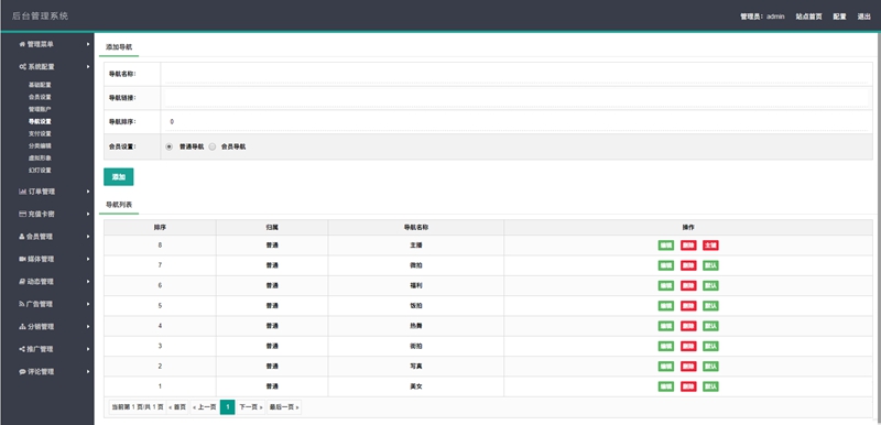 7、支持自定义添加导航类目可排序(普通导航/会员导航)