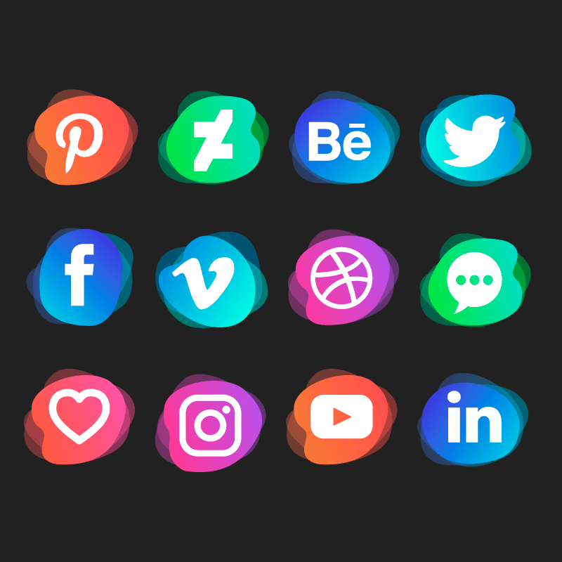 这是一款不规则形状社会化图标矢量素材,共 12 个,包含了 Twitter、Facebook、Linkedin、Skype、Whatsapp 等等,素材提供了 AI、EPS、免扣 PNG 等格式,适用于社会化图标设计使用。