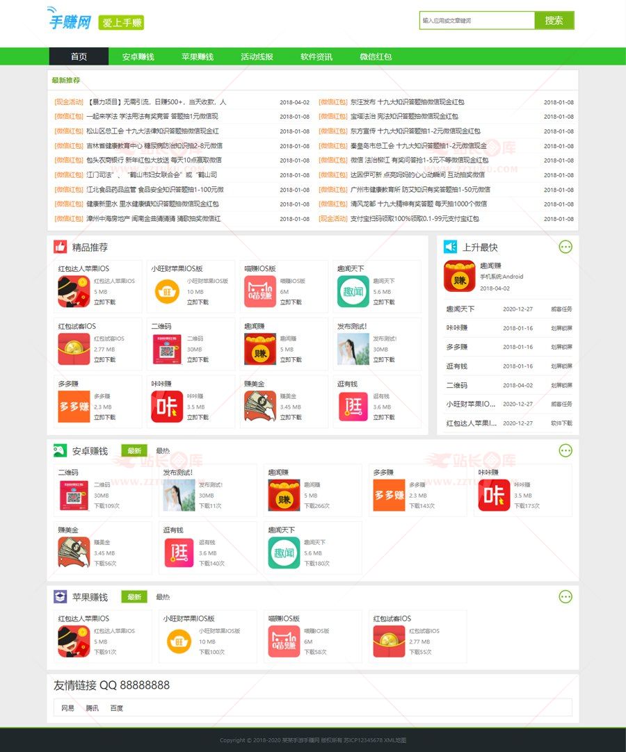 绿色软件手游手赚资源分享下载网站织梦模板/DedeCMS带手机版数据同步手机网赚类模板下载