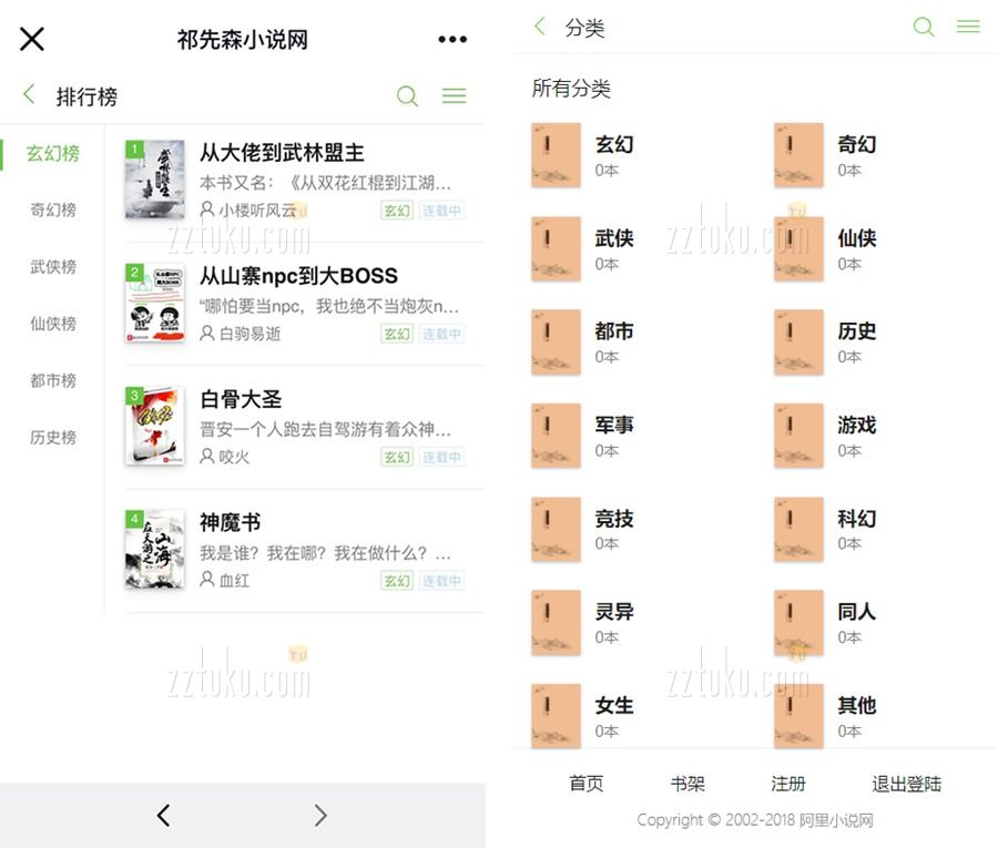 Thinkphp5.0内核仿阿里巴巴小说网站源码 PC端+WAP手机端