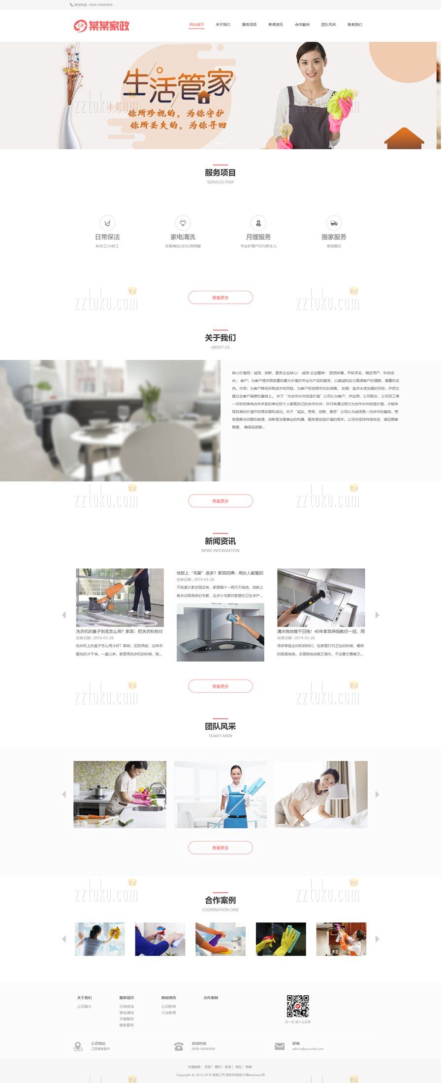 EyouCMS响应式家政保洁月嫂服务网站模板,易优CMS家政服务类企业网站模板。适用于摄像、婚庆、家政、保洁企业网站使用。本模板自带eyoucms内核,无需再下载eyou系统,原创设计、手工书写DIV+CSS,完美兼容IE7+、Firefox、Chrome、360浏览器等;主流浏览器;结构容易优化;多终端均可正常预览。