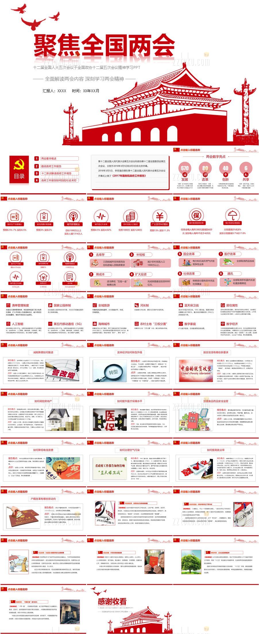 转载请声明来自:站长图库 - 红色党建风聚焦两会PPT模板使用声明: