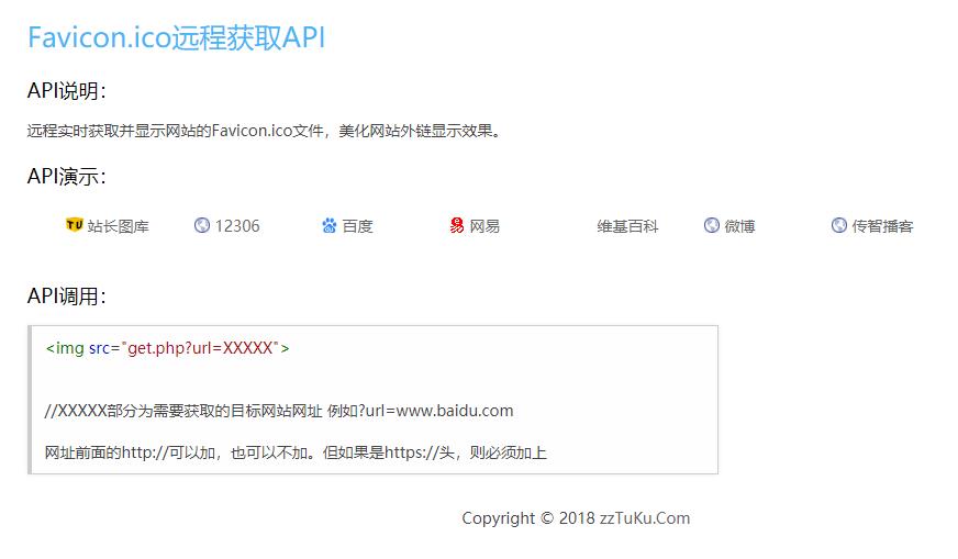 此API为远程实时获取并显示网站的Favicon.ico文件,美化网站外链显示效果。