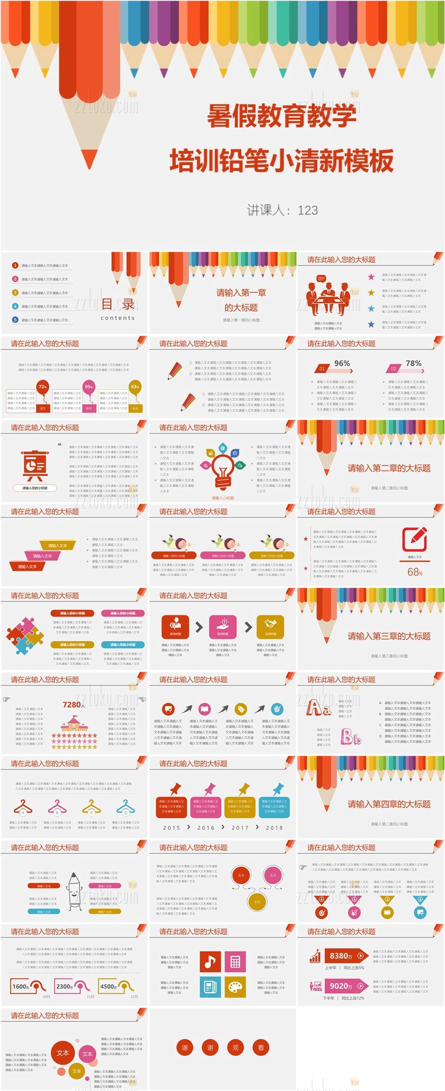 转载请声明来自:站长图库 - 暑假教育教学培训铅笔小清新PPT模板使用声明: