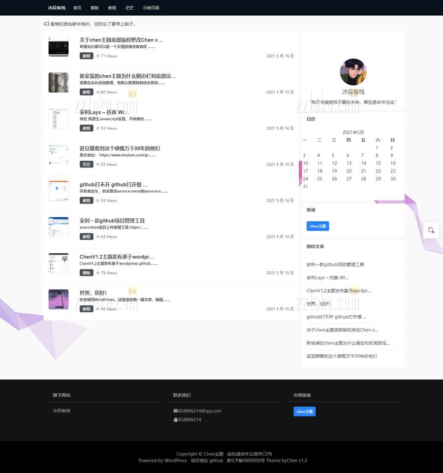 转载请声明来自:站长图库 - Chen主题v1.2/简约小清新开源WordPress博客类型主题模板使用声明: