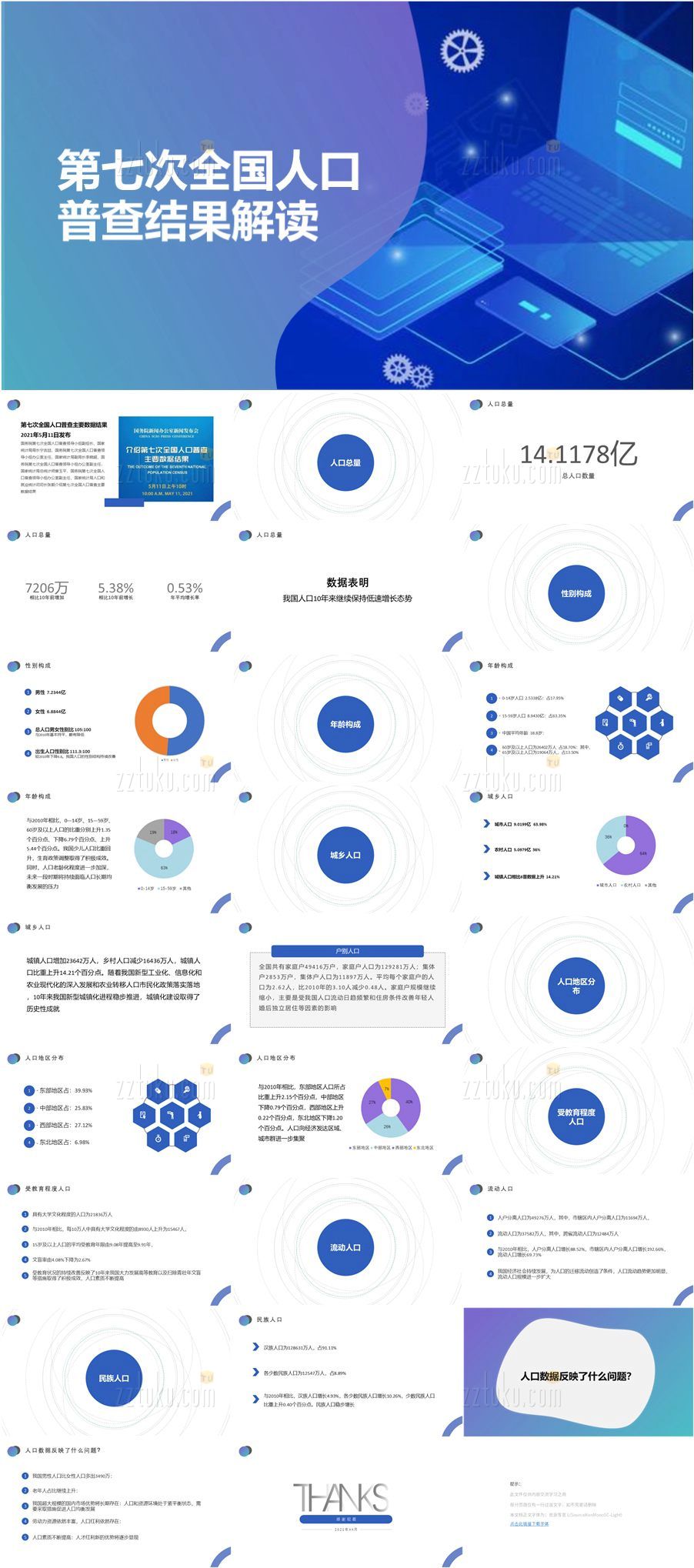 转载请声明来自:站长图库 - 第七次全国人口普查结果解读PPT模板使用声明: