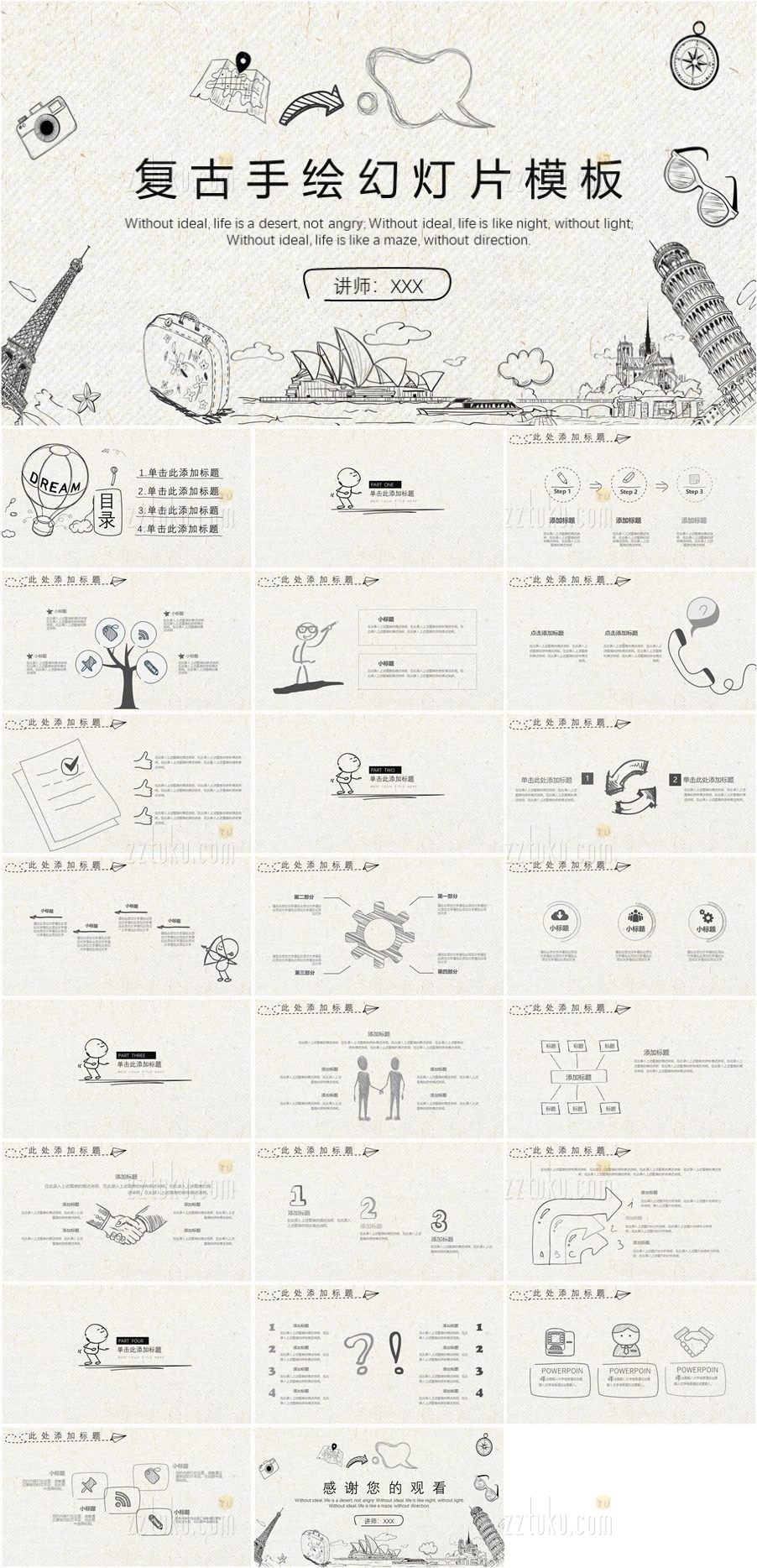 转载请声明来自:站长图库 - 复古手绘通用PPT幻灯片模板使用声明: