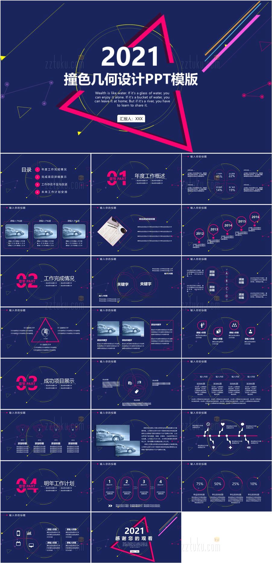 转载请声明来自:站长图库 - 时尚红蓝撞色几何图形PPT模板使用声明: