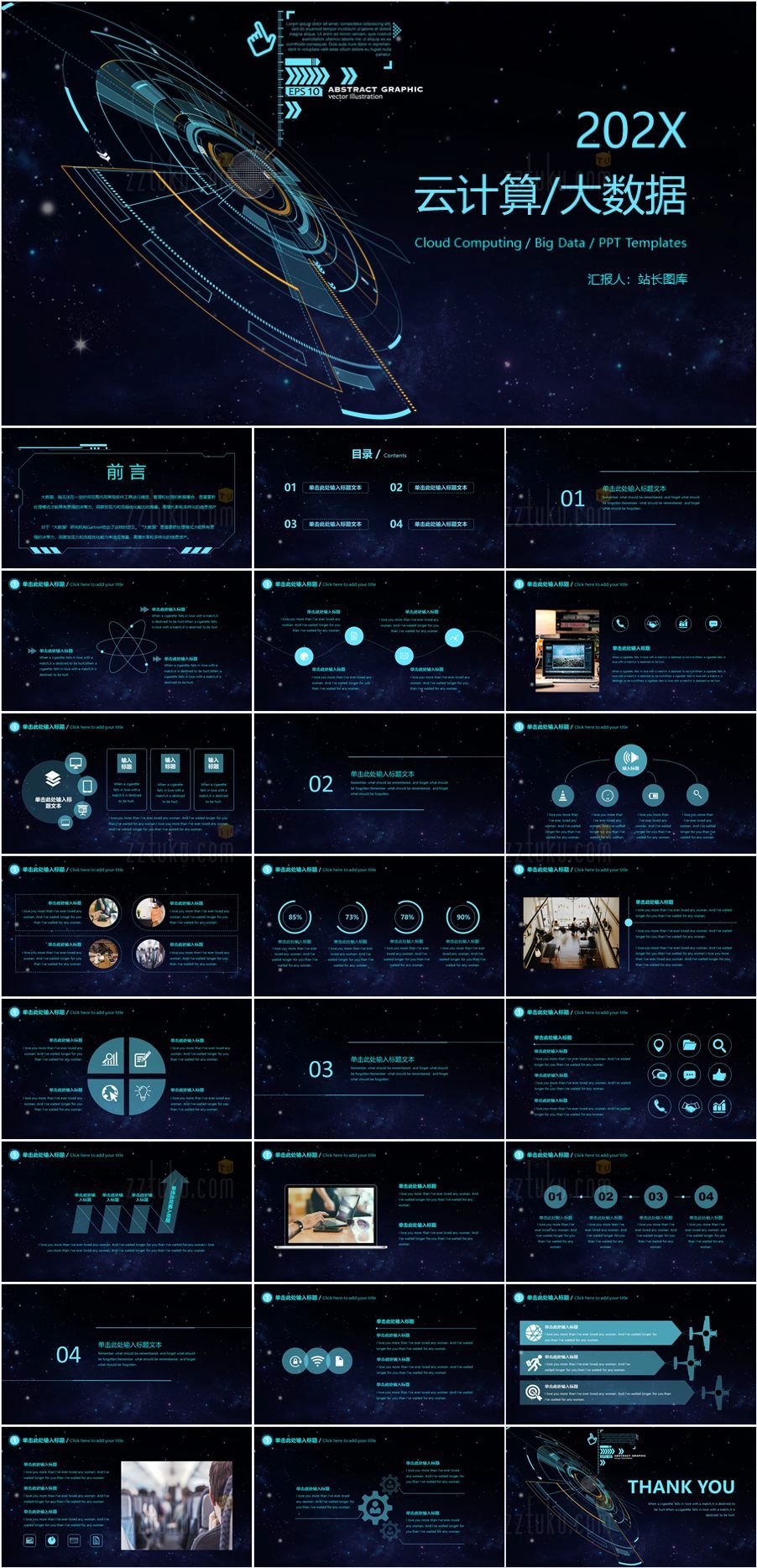 转载请声明来自:站长图库 - 云计算大数据科技风PPT模板使用声明: