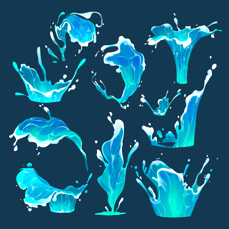 转载请声明来自:站长图库 - 卡通风格的水花矢量素材使用声明:
