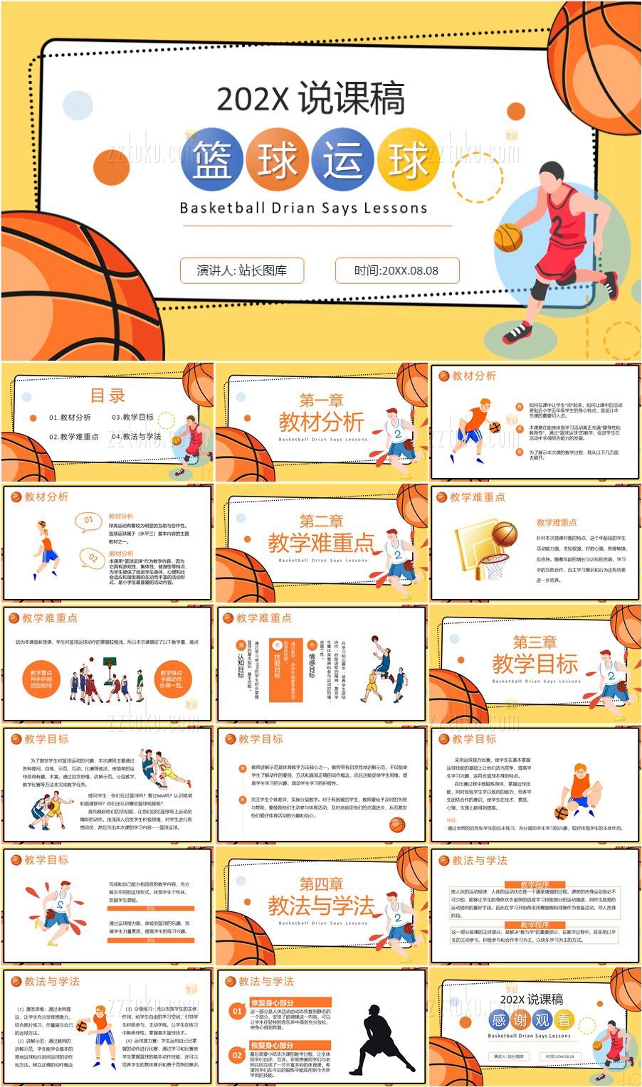 转载请声明来自:站长图库 - 篮球体育课教学说课PPT模板使用声明: