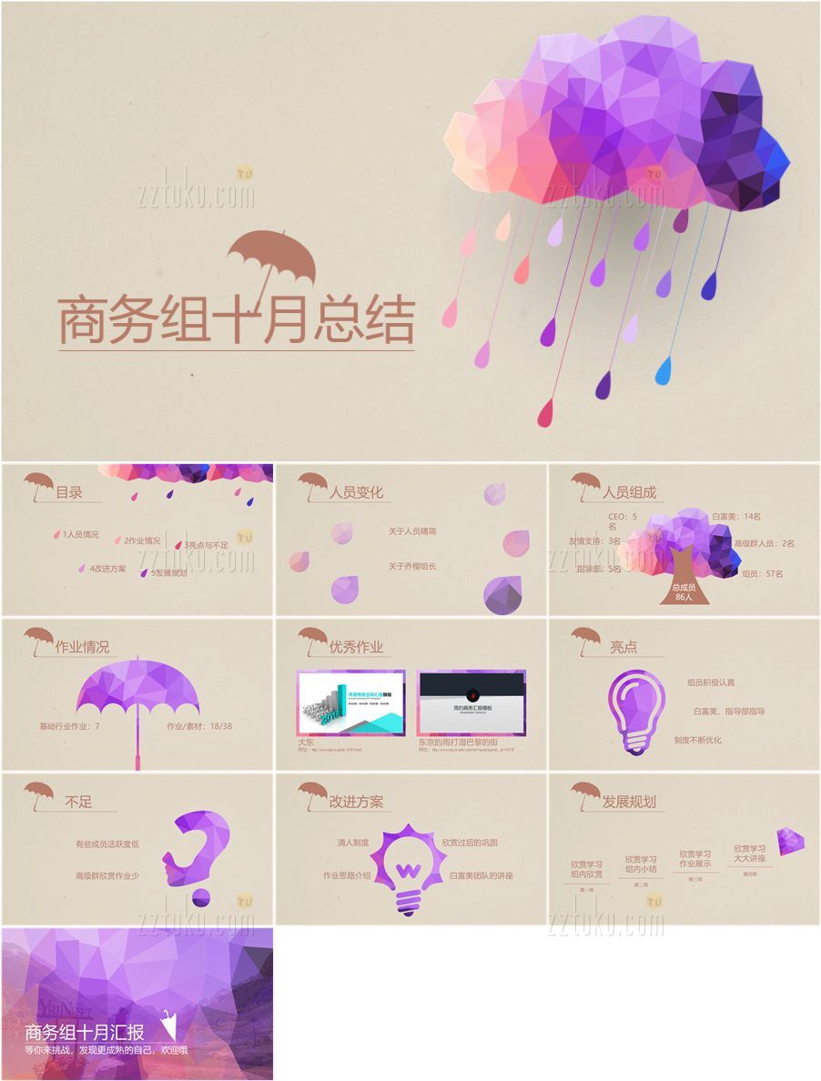转载请声明来自:站长图库 - 创意时尚多边形彩云PPT模板使用声明: