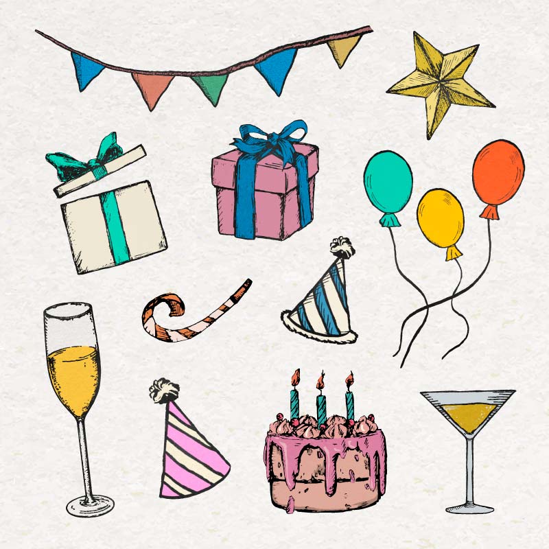 转载请声明来自:站长图库 - 手绘复古风格的生日元素矢量素材使用声明: