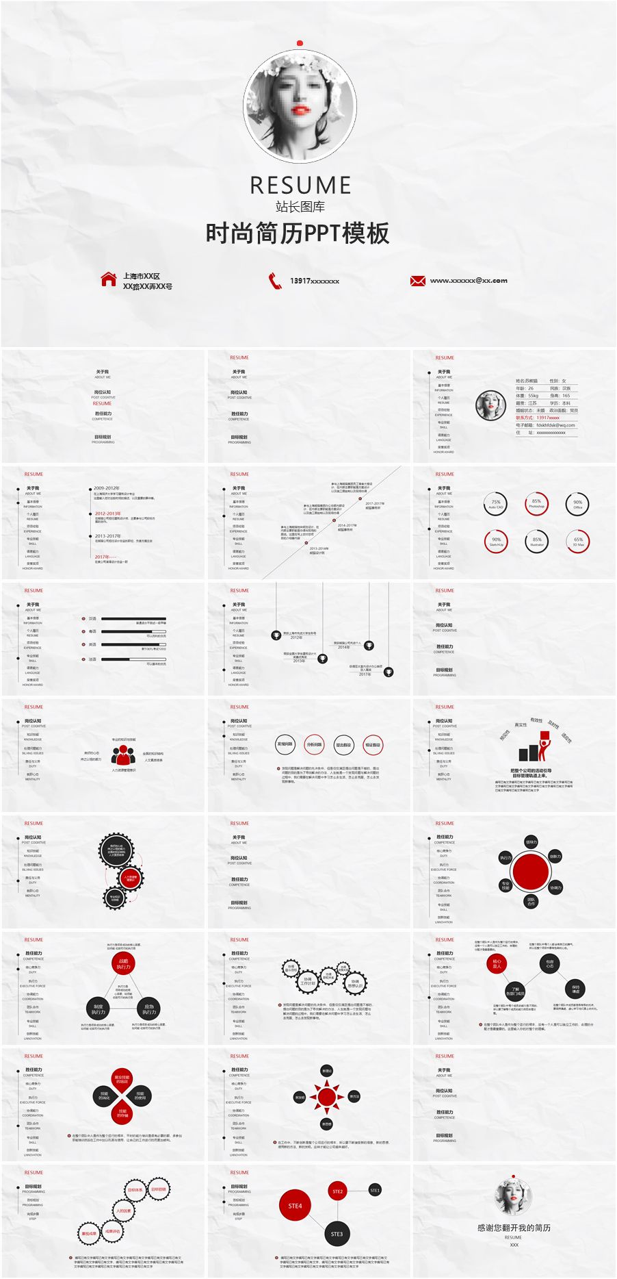 转载请声明来自:站长图库 - 极简创意侧边导航个人简历PPT模板使用声明: