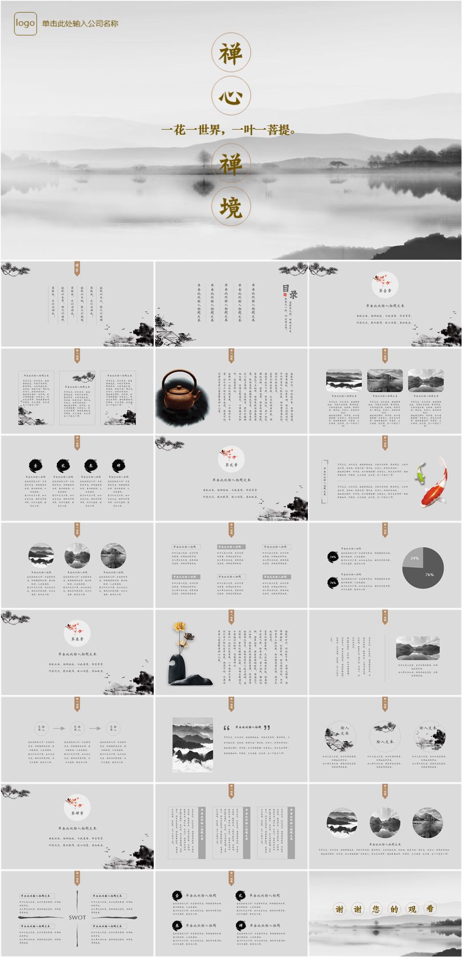 转载请声明来自:站长图库 - 素雅禅意水墨中国风PPT模板使用声明: