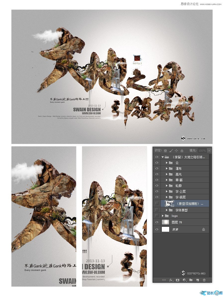 素材和PSD文件:3D岩石艺术字PS教程素材