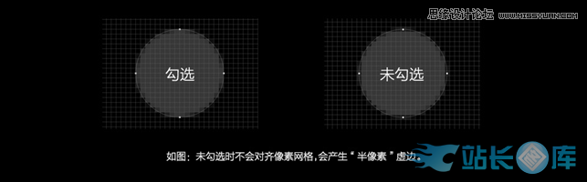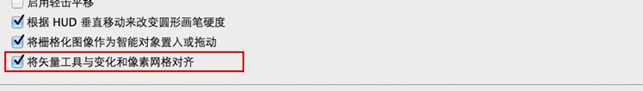 不用多说了,UI设计应该经常开关此项,勾选后在操作图层、形状等时将自动对齐像素网格,确保不产生虚边,但在制作复杂图形时需要微调整,这时我往往会暂时关闭它。此项CS6及以上版本才有,so强烈建议UI设计更新PS版本。