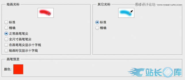 记得上面介绍的可以通过拖动来控制画笔硬度和大小的HUD操作吧,在这里可以选择设置画笔预览颜色奥~