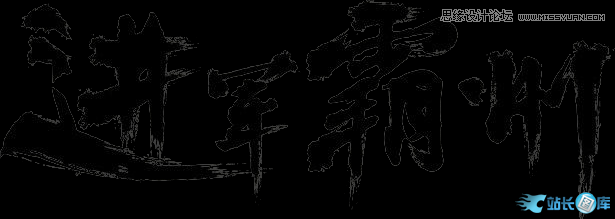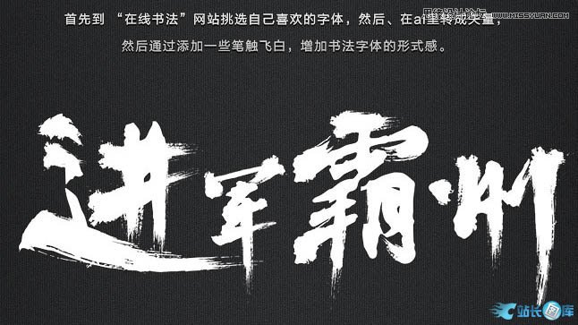 1、首先选择自己喜欢的字体,在Ai里面转为矢量,然后通过添加一些笔触,增加书法字体的形式感。这里可以直接先保存下图所示的PNG素材图片,新建一个800 * 600像素的文件,背景填充黑色,把文字素材拖进来,填充为白色。