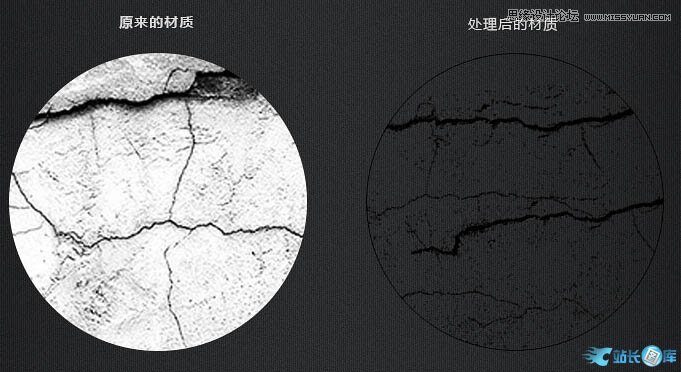 纹理火焰字跟其它火焰字制作思路基本一致,只是在制作火焰字之前,需要先给文字增加一些独特的纹理,如裂纹或其它材质。这样做出的火焰字更有个性。