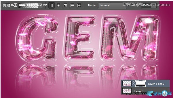 16。现在,选择渐变工具的宝石文字倒影层上,拖动小线垂直向上,从而创造效果如下图所示: