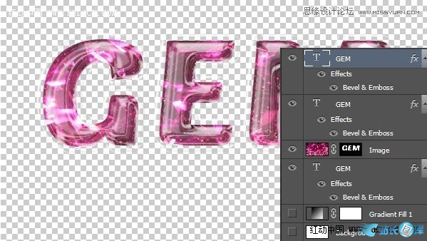 15。将盖印图层的名称更改为"宝石文字",复制宝石文字层。命名此作为'文字倒影。