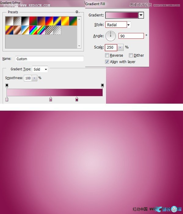 2。创建 调整图层,选择 渐变,然后进行以下更改,并创建你的背景显示的方式: