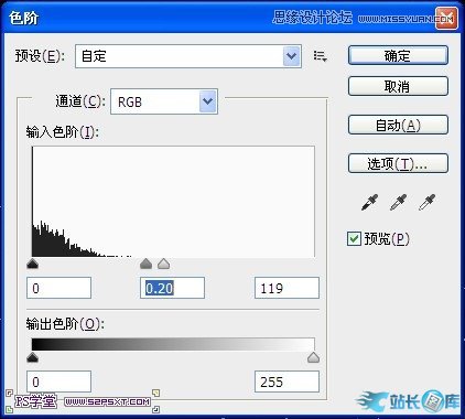 进行色阶的调整,使得黑色的部分增多,只留下部分星星的感觉,再加强剩余星星的白色。可以重复调整几次,加强效果。