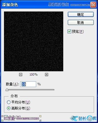 8.现在我们来做星星部分,新建图层编辑填充黑色,执行滤镜--杂色--添加杂色,10左右,高斯,单色