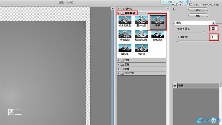 打开滤镜库/画壁描边/喷溅 (图二)