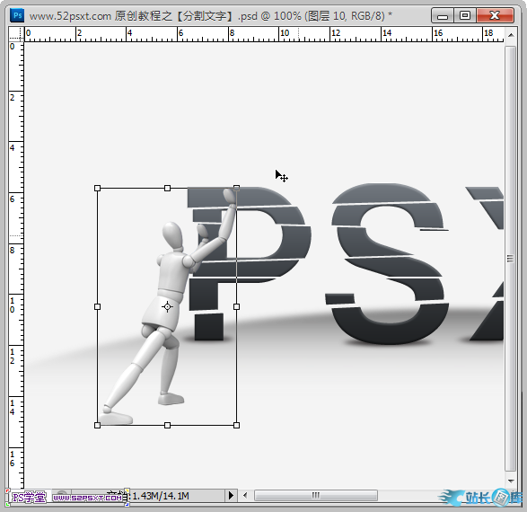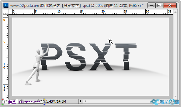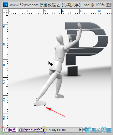 站长图库 - Photoshop制作3D小人推动切割的艺术字教程