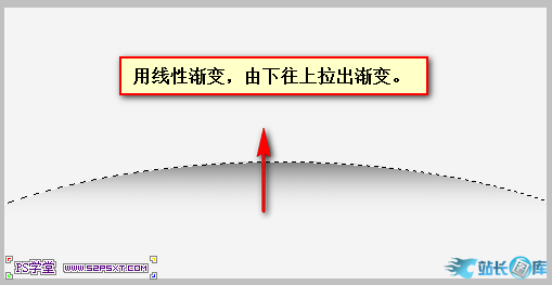 2、新建图层,用椭圆选框工具,拉出如下图形的选区,并填写由黑色到透明的渐变。