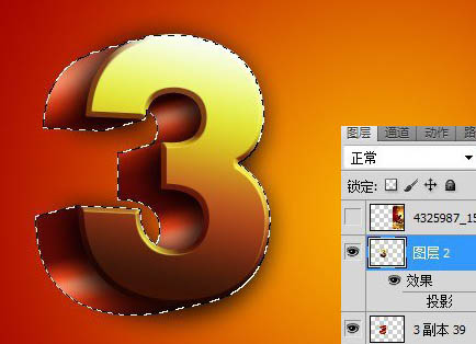 10、栅格化图层40,也就是最上面的3字层。