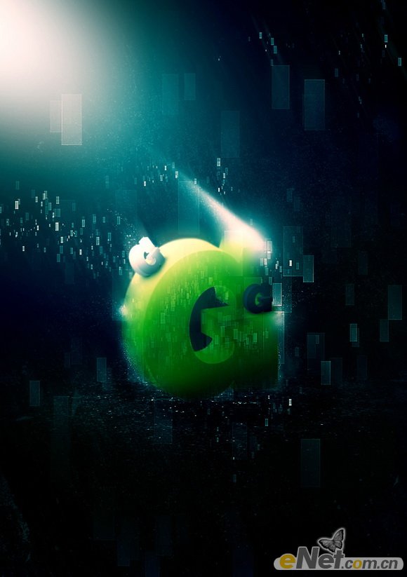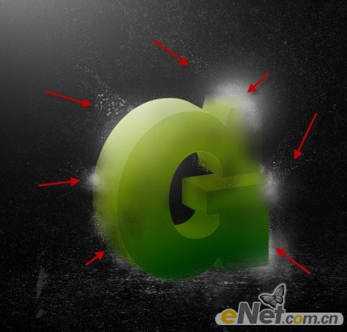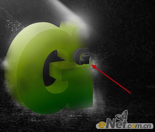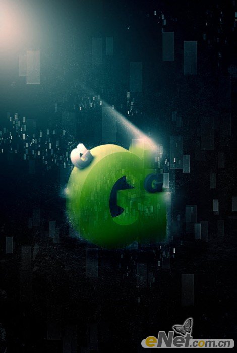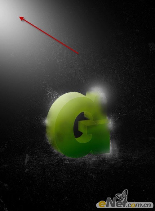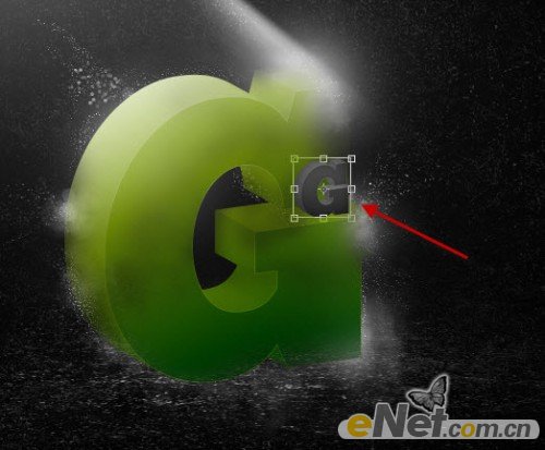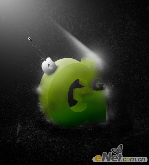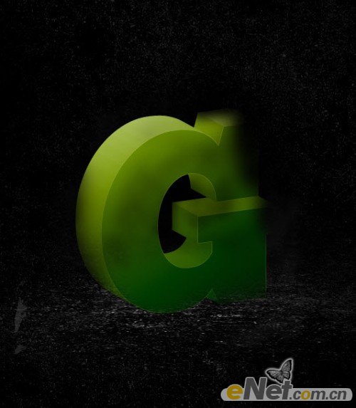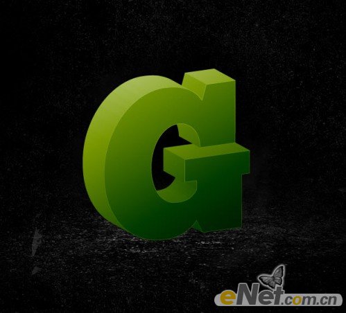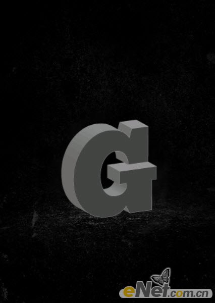 2. 你可以使用max制作一个3D文字"G",如果你感觉麻烦可以到网上去下载一个,有很多这样的psd免费文件。将文本置入画布上并放在如下位置,