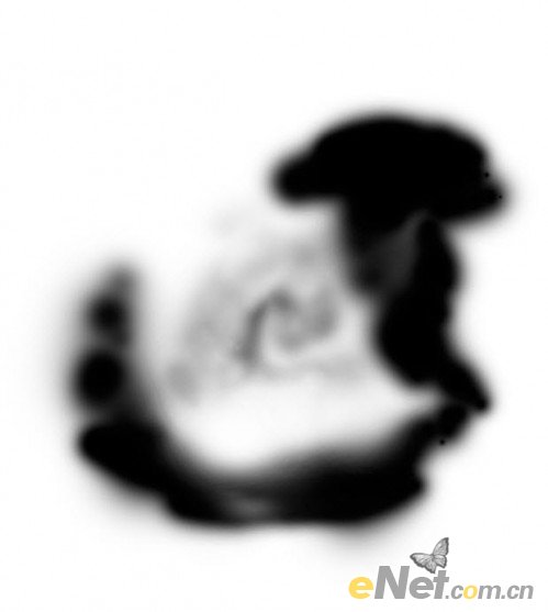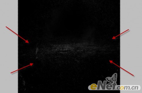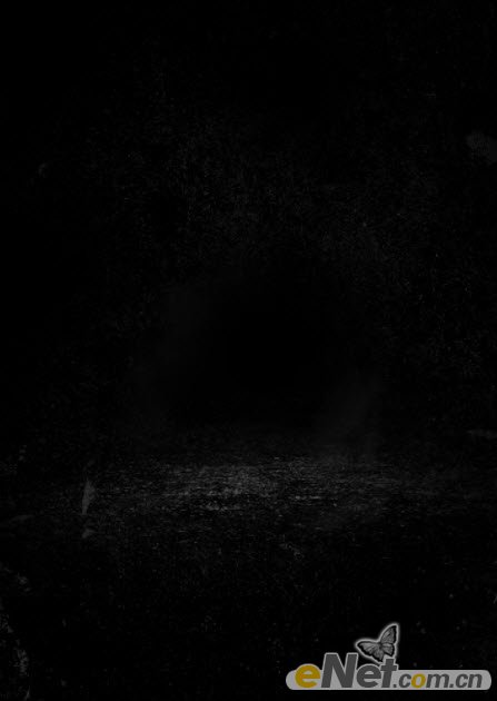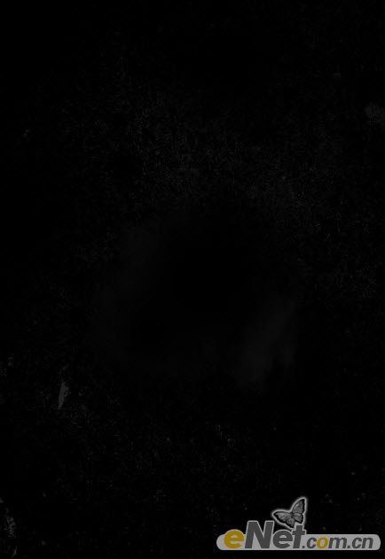 1. 创建一个740*1050像素的文件,设置背景为黑色。新建一个层命名为"灰",从网上下载"灰尘"笔刷,在画布上绘制如下图所示的效果