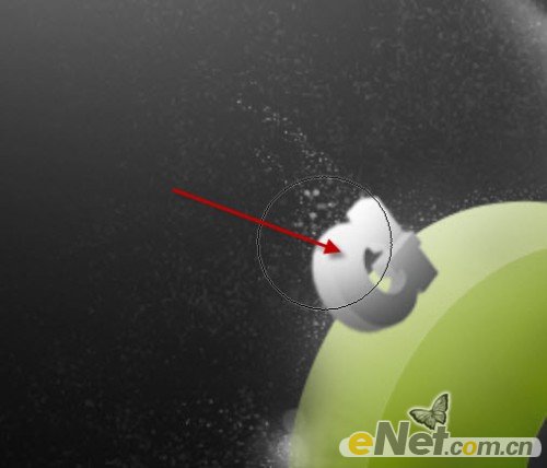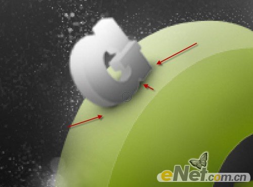 新建一个层,使用软角白色笔刷,在文字上绘制亮光,如下图所示