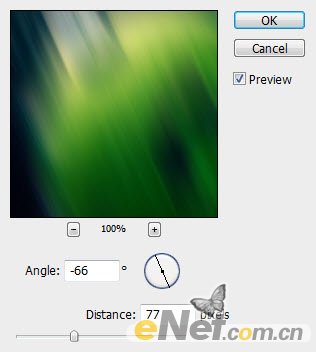 下面添加一些动感,合并图层,点击菜单中的"滤镜>模糊>动感模糊"如下图设置