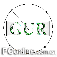 图012.新建一层,命名为top,载入text层选区,设置前景色为RGB(52,230,56),用前景色填充选区,保持选择状态不变。