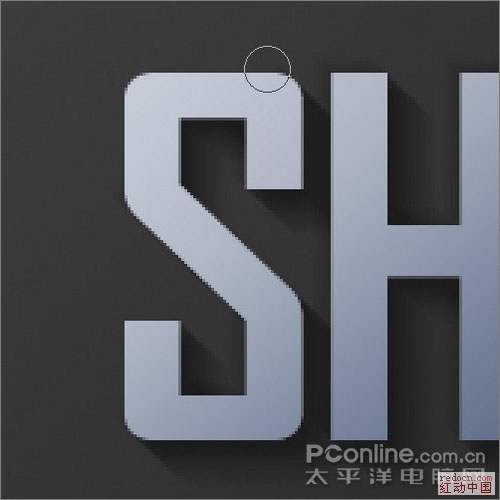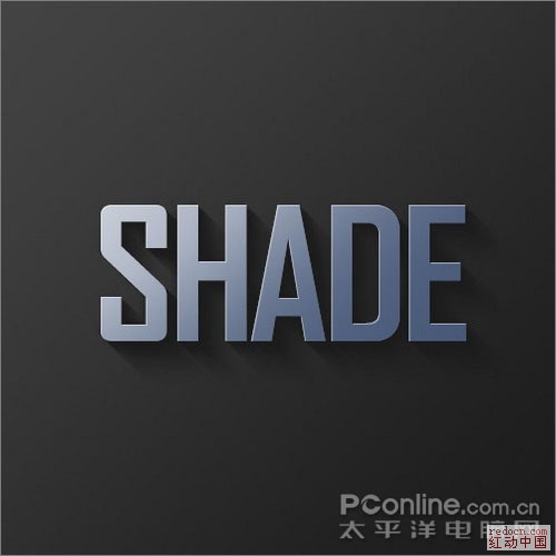 6、设置阴影图层为正片叠底,不透明度40%,接着按住Shift键按下键盘的右箭头和下箭头各一次,这会使得每次移动变为10像素。现在你可能还会看见字母的上方和左方有一些模糊的阴影,使用一个柔软的橡皮擦擦掉那些不该出现阴影(还记得文章开头对阴影的分析吗?)。