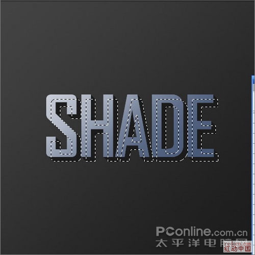 3、按住Ctrl用鼠标左键点击刚才的文字图层载入选区,然后新建一个图层。在新图层,保持选区被选状态,用渐变工具画一个从#495a79到透明、从右下到左上的线性渐变。你会得到如下图的效果。