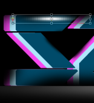 6.同样的方法我们在文字上做高光,新建图层,用柔光画笔点出一点,变形,摆放好,效果如下: