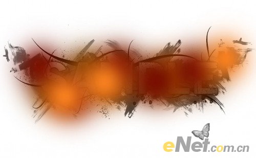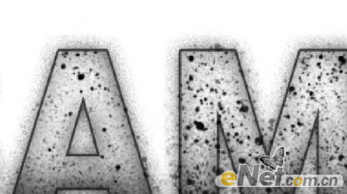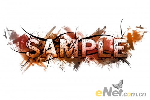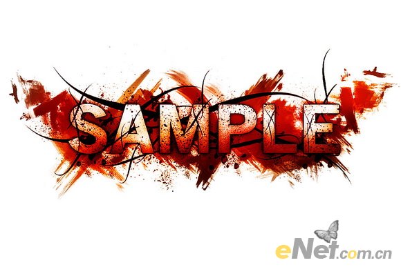 4.保持选区,新建一个层,下载污点笔刷,在文字上绘出如下污点