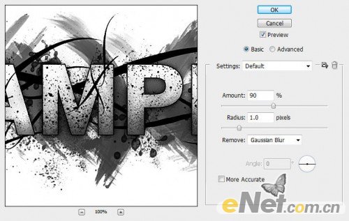 7.继续来调整一下图层,复制背景图层用饱和度降低图像色彩,然后点击“滤镜>锐化>智能锐化“并如下图做出调整