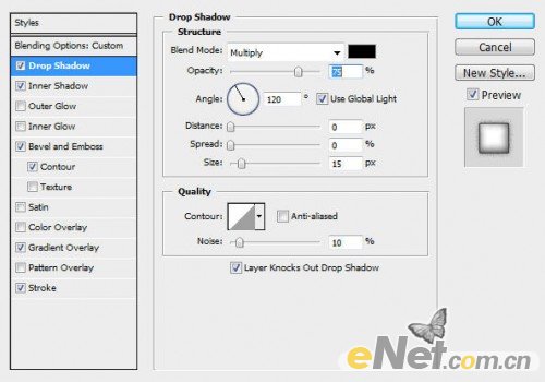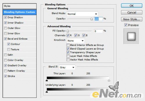 2.选择文本图层,点击图层面板下方的“添加样式”,如下图设置以下选项