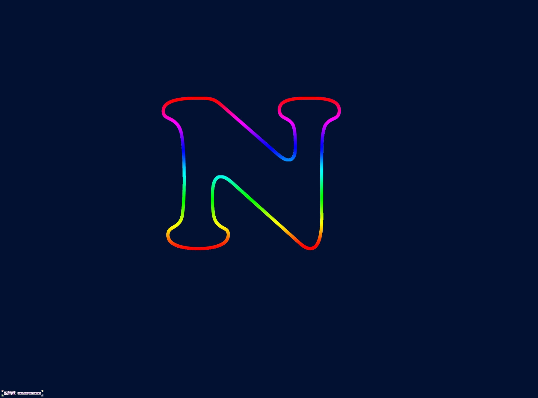 1先打一个字母。载入选区。 拉七彩渐变。收缩选区,DEL删除中间