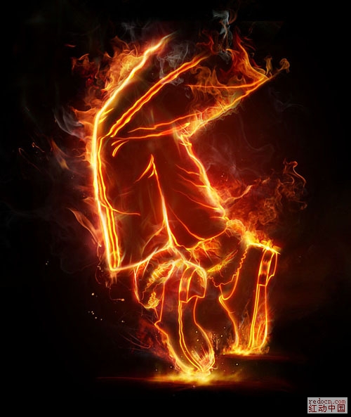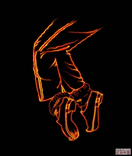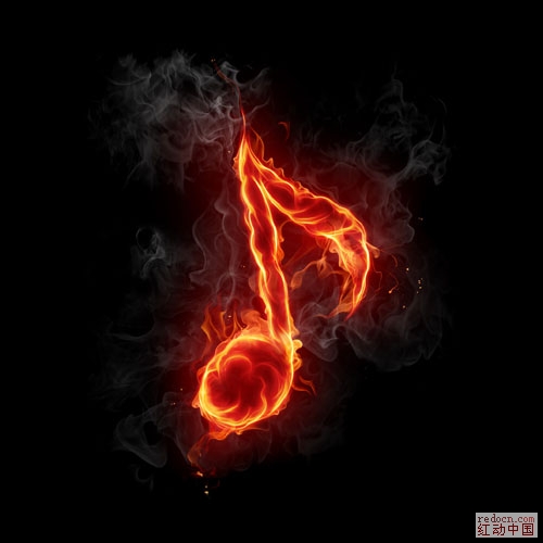 本教程介绍非常独特的火焰图形的制作方法。作者示例用的是线条图形,如果是实物图则需要转为线条图后再制作。制作过程并不复杂,先用图层样式简单给图形加上一些颜色和光感。然后用液化滤镜等把边缘稍微扭曲,最后用火焰素材加上火焰即可。