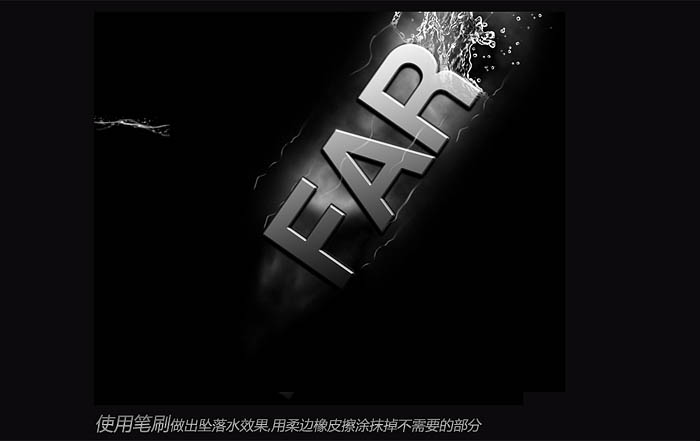 坠水的文字效果跟流星效果有点类似,尾部都会产生一些特殊的效果。流星产生的是火焰,文字后面则产生一些水泡及水花。
