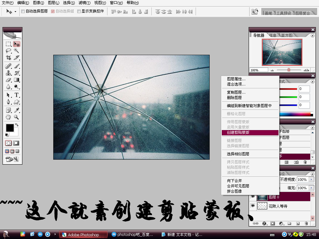 3.把背景层解锁,然后把背景层向上挪一层。然后右键有个创建剪贴蒙版。如图。